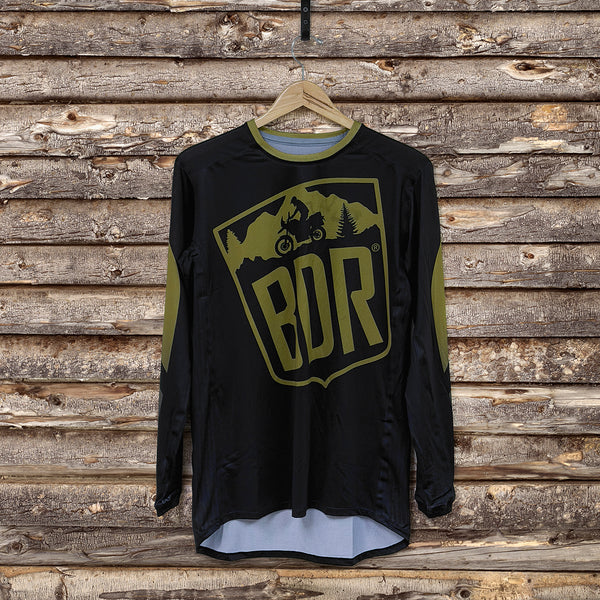 Spin around and you’ll find a clean, minimal back with a subtle BDR crest at the neckline, giving the jersey a sleek, tactical look whether you're standing on the pegs or strolling into camp.
